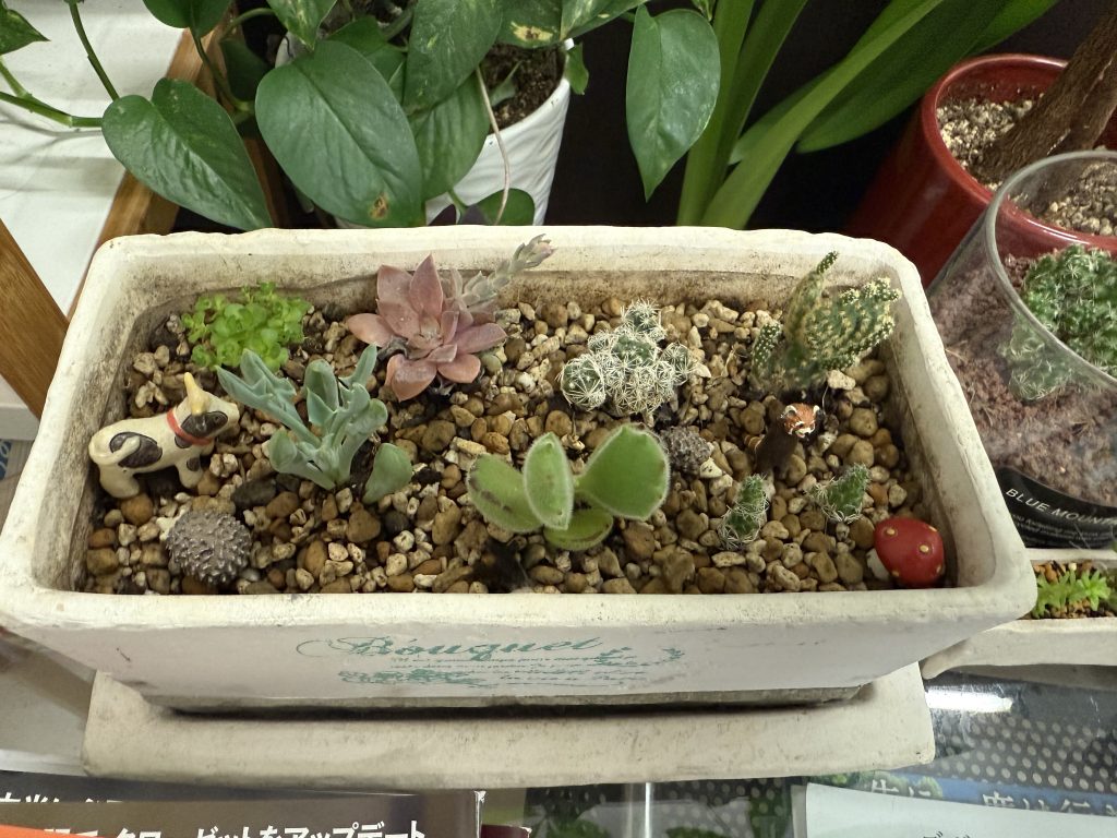 店で寄せ植えやサボテン植え替えしてました
